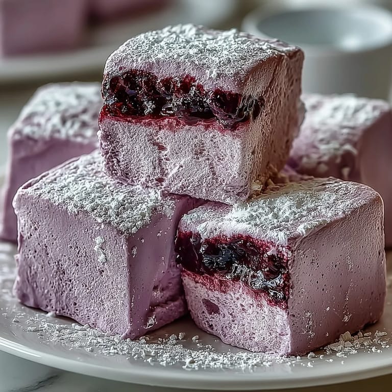 Save There's something almost alchemical about watching gelatin and sugar syrup transform into clouds of marshmallow in a stand mixer—I discovered this while experimenting with fruit purées one autumn afternoon, trying to capture the tartness of blackcurrants in something pillowy and light. What started as a casual weekend project became an obsession; the deep purple swirl of blackcurrant turning the mixture into this soft lavender shade felt like magic happening in real time. My kitchen smelled like a jam kitchen and a candy shop had collided, and honestly, I couldn't stop eating the scraps.