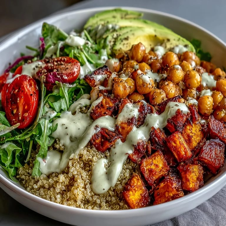This bowl is less of a rigid recipe and more of a template that invites you to play around—I've made it with brown rice when I was out of quinoa, swapped in roasted broccoli instead of half the sweet potatoes, and once used cauliflower rice when I wanted something lighter. The dressing works with basically any grain and vegetable combination you can imagine, so think of it as a framework rather than something carved in stone. The one thing I never compromise on is the tahini dressing quality and the chickpea crispiness, because those two components are what elevate this from a salad to something really special.