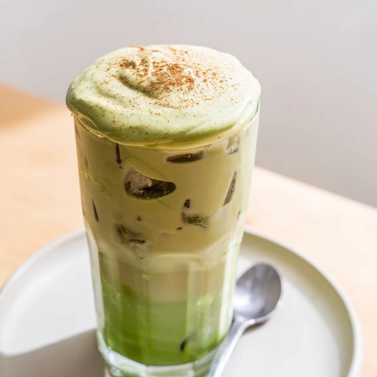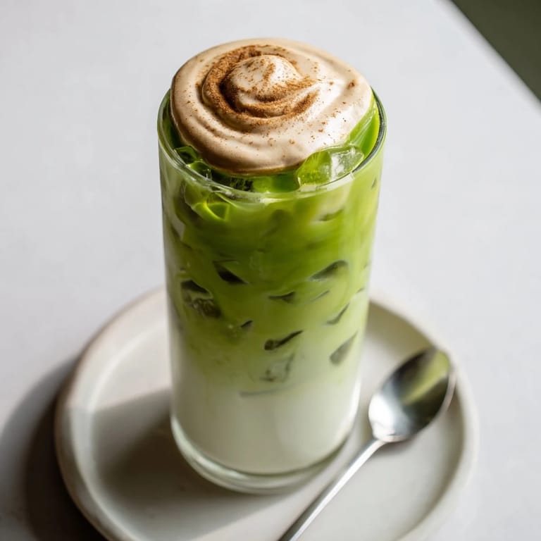 Save A vibrant iced matcha latte infused with cinnamon and vanilla, topped with a creamy, high-protein foam reminiscent of a cinnamon roll glaze. Refreshing, energizing, and indulgent perfect for a healthy treat or afternoon pick-me-up.