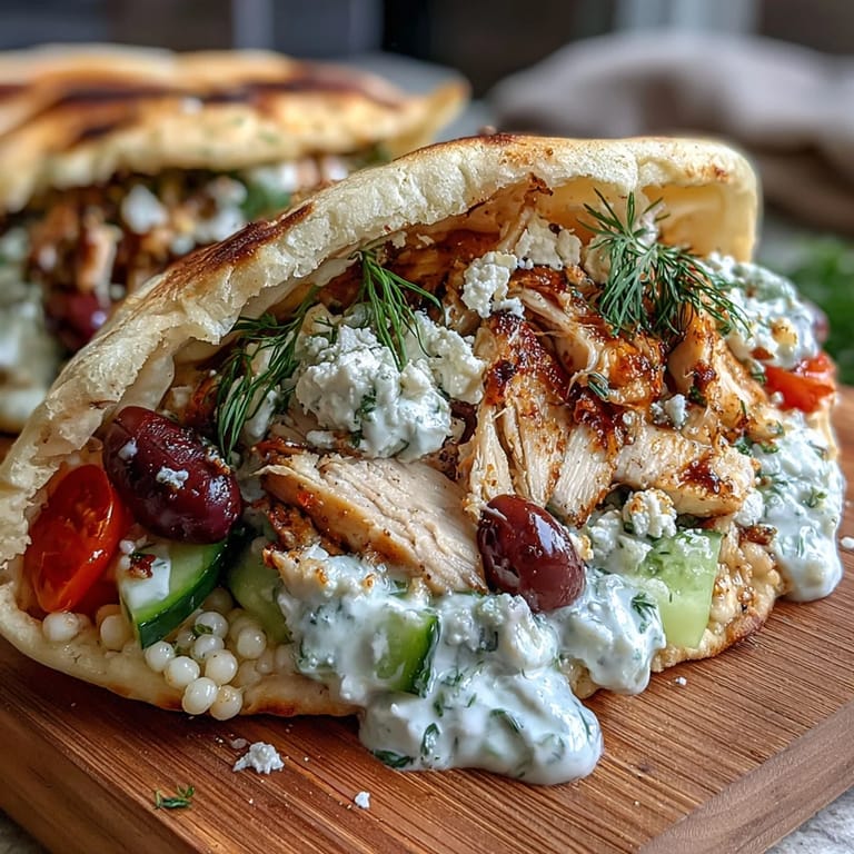 Save There's something about assembling a pita that feels like you're building something just for yourself, even if you're feeding four people. I discovered this Greek chicken feta version on a sweltering afternoon when my kitchen was too hot to turn on the oven, and I needed something bright and fresh that wouldn't heat up the house. The lemon-marinated chicken, fluffy couscous studded with olives and tomatoes, and cool, herbaceous tzatziki came together so naturally that it became an instant weeknight favorite. Now whenever someone asks for a meal that feels both indulgent and light, this is what I reach for.