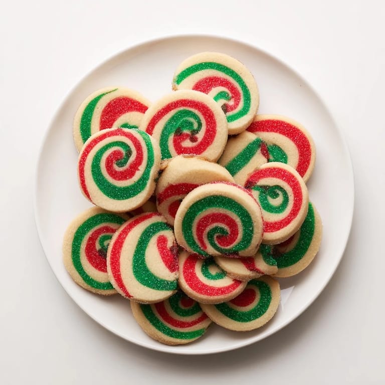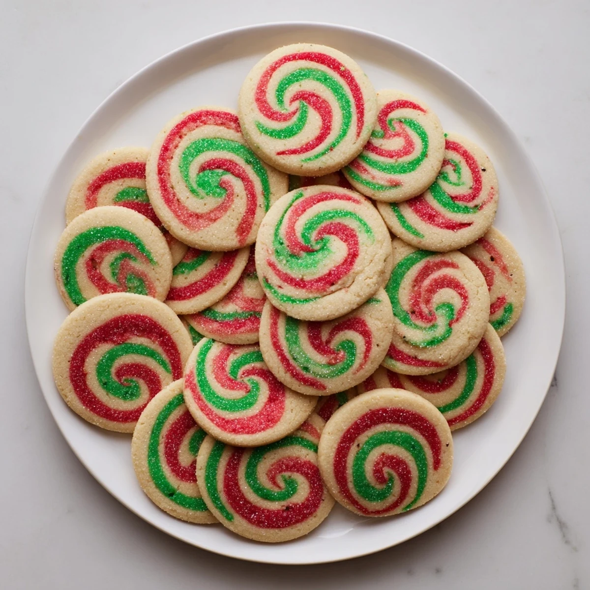 Save Festive, buttery sugar cookies with vibrant red and green swirls, perfect for holiday celebrations and cookie exchanges.