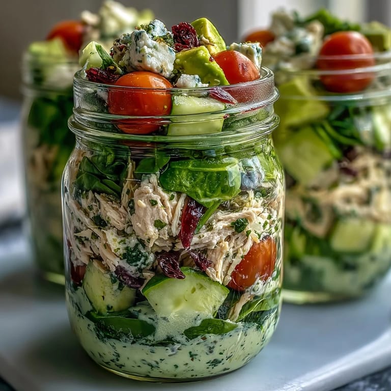 Save My coworker Marcus brought these mason jar salads to lunch one day, and I watched him shake one up right at his desk like he was mixing a cocktail. The thing that got me was how the avocado stayed perfectly creamy even after sitting in the fridge overnight, and the lime dressing had somehow made everything taste brighter without a drop of mayo. I asked for the recipe that afternoon, and now these jars live in my fridge every Sunday evening, ready for those mornings when I'm running late but refuse to hit the drive-through.