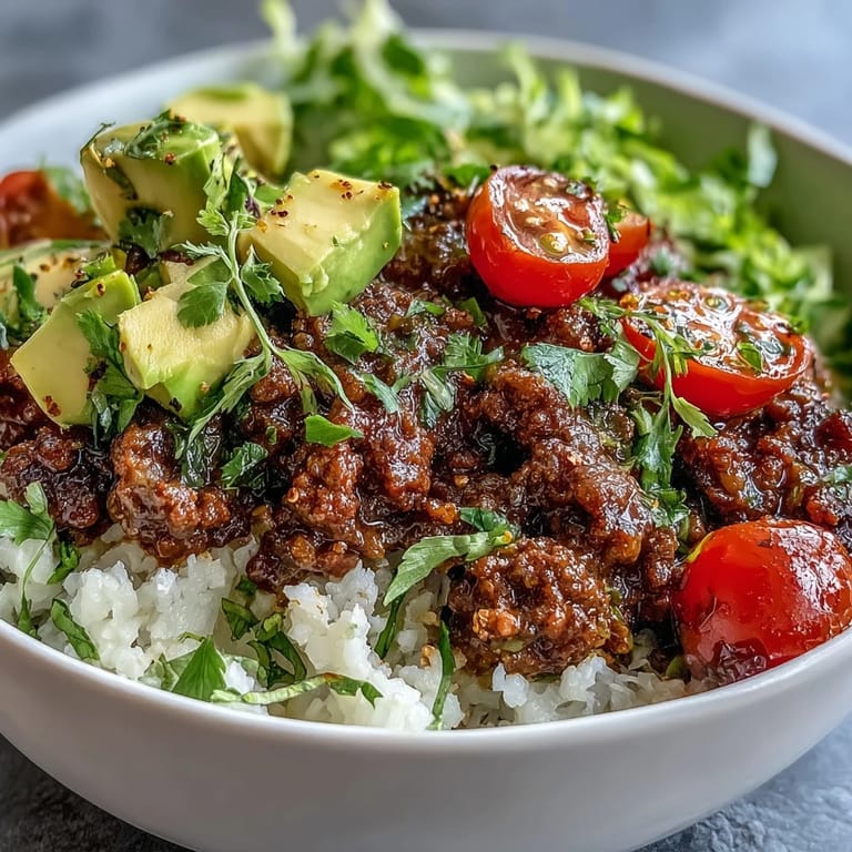 Save The sizzle of seasoned beef hitting a hot skillet on a Tuesday night became my solution to craving takeout without the carb crash. I was standing in my kitchen, spatula in hand, watching the spices bloom in the oil, and suddenly everything smelled like a taco stand I'd visited years ago in Phoenix. The cauliflower rice was a skeptical last-minute swap, but one bite with lime squeezed over the top made me forget I ever missed tortillas. Now this bowl is my weeknight reset, quick enough for busy evenings and layered with enough flavor to feel like something special.