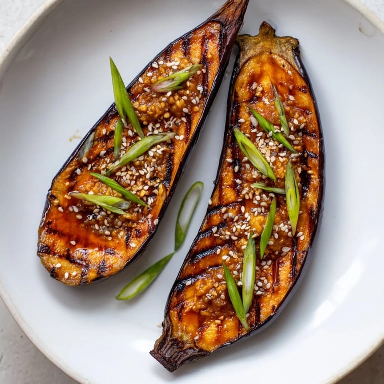 Save The smell of miso caramelizing under a broiler triggers something primal in me, that perfect moment when sweet meets savory and your whole kitchen comes alive. I discovered this dish on a rainy Tuesday when Japanese eggplants looked particularly gorgeous at the market, and now it is become my go-to when I want something that feels fancy but takes almost no effort. There is something magical about how the eggplant flesh turns into silk while the glaze creates this incredible candied crust on top.