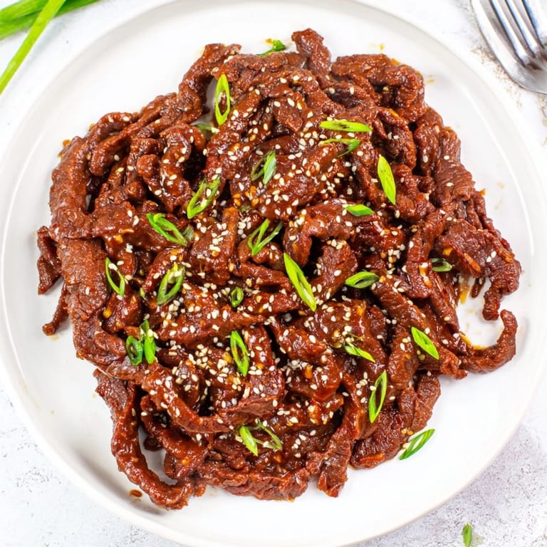 Once cooled completely the beef stores in airtight containers in the fridge for up to four days. If making ahead let the garnishes cool and add them just before serving for best texture. For longer storage you can portion the shredded beef and sauce into freezer-safe bags press out extra air and lay flat to freeze. Thaw overnight in the fridge and reheat gently on the stovetop or microwave with a splash of water to re-loosen the sauce.