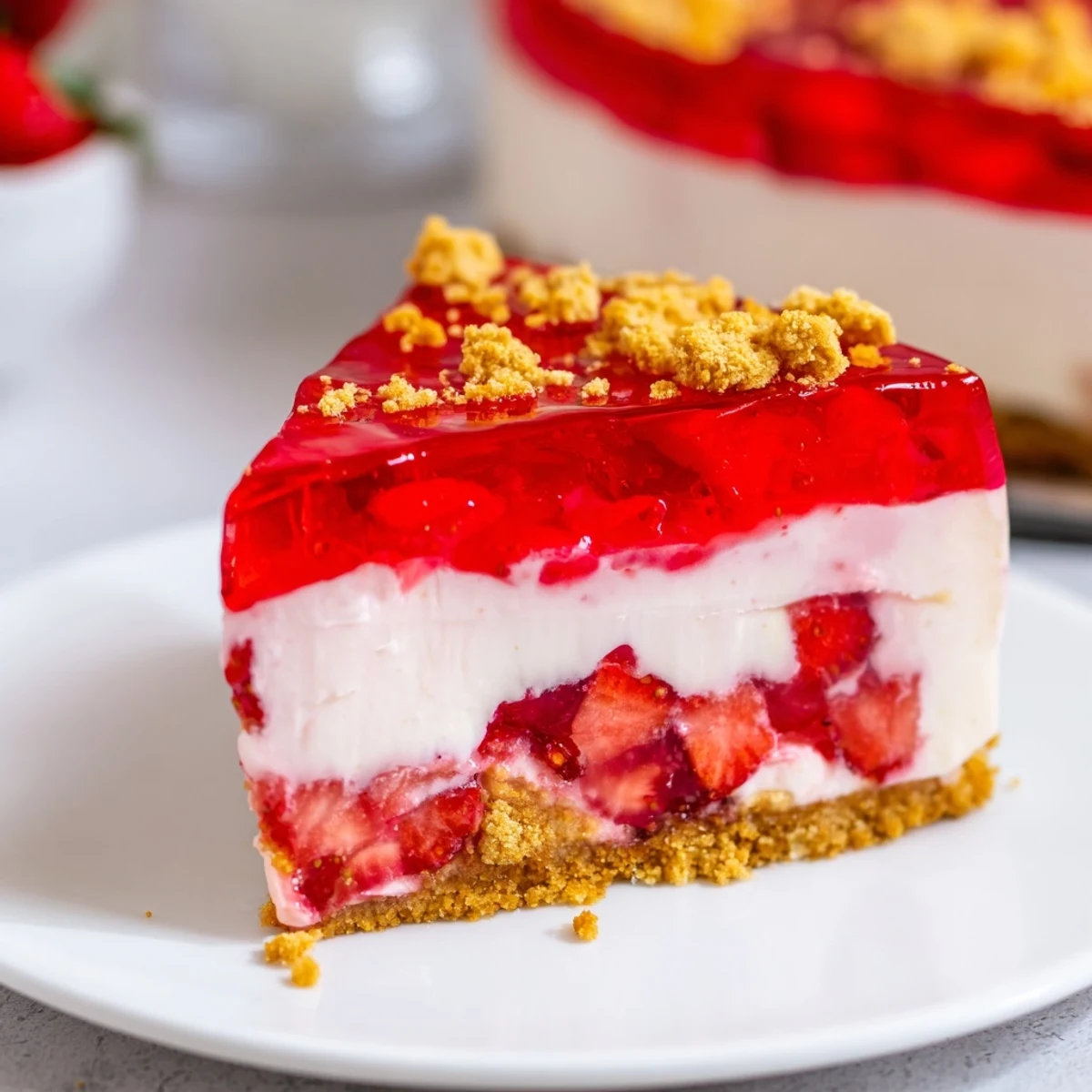 - Strawberry Layer: 1 box (3 oz) strawberry Jell-O, 1 cup boiling water, ½ cup cold water, 1 cup whipped topping (Cool Whip or whipped cream), 1 cup chopped fresh strawberries