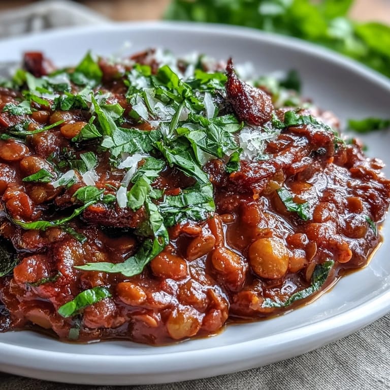 Lentils have this quiet power in the kitchen that people don't always respect. They absorb flavors around them while holding their shape, creating a texture that's simultaneously hearty and delicate. When you cook them into a sauce like this, they break down just enough to become creamy and satisfying, but maintain enough structure that you get these little pockets of nuttiness in each bite that ground meat could never replicate.